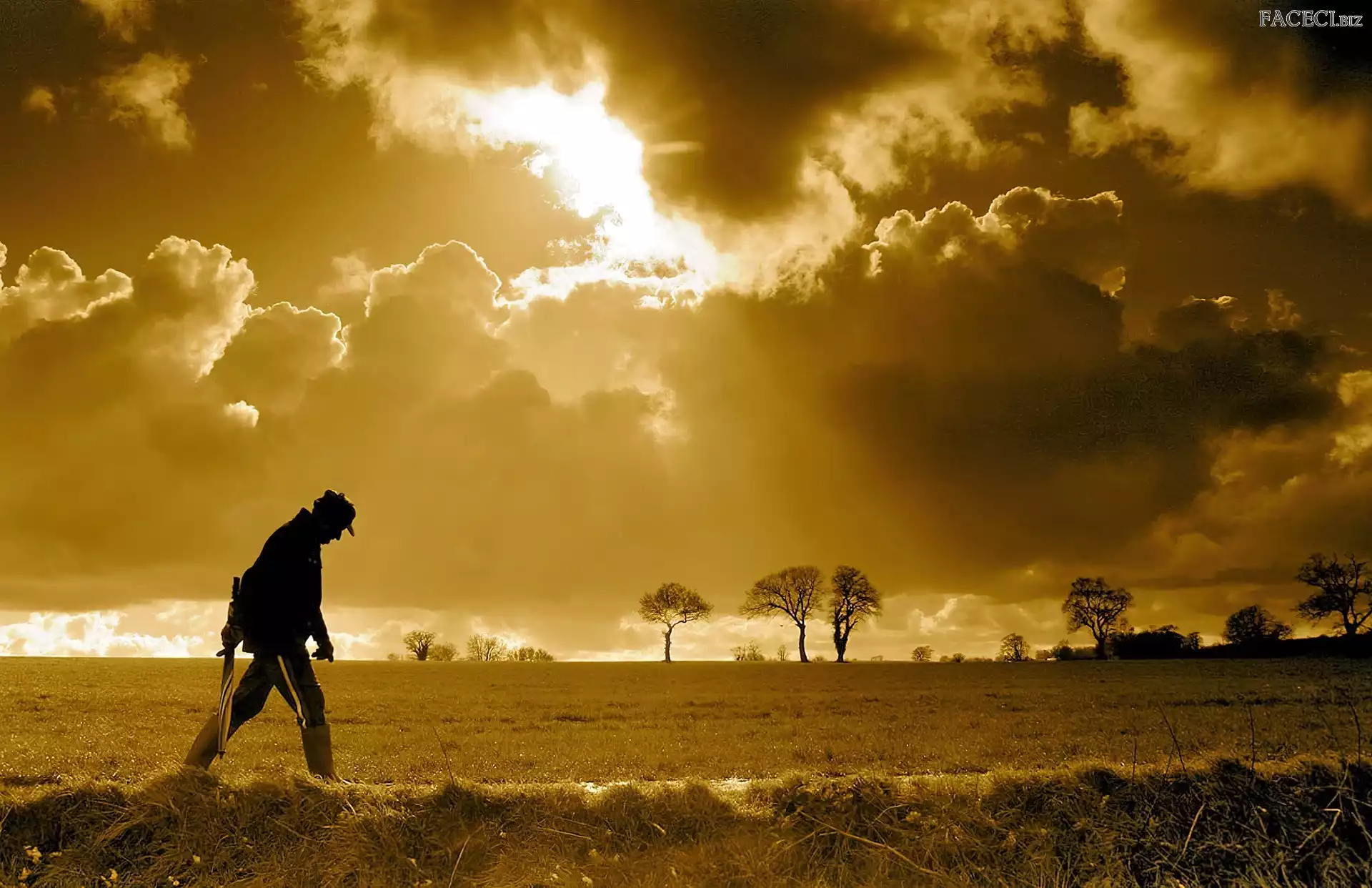 Mężczyzna, Chmury, Pola - faceci.biz